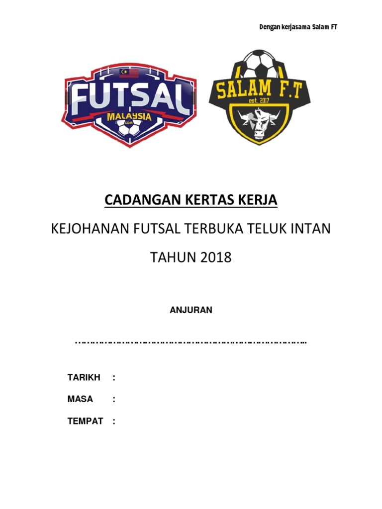 Futsal 15 kertas kerja futsal pdf Rating 385 reviews futsal 15 kertas kerja futsal Format Rancangan. Kertas kerja futsal 5 sebelah 1. 10 PENGENALAN Futsal merupakan salah satu sukan yang amat diminati di kalangan rakyat Malaysia.